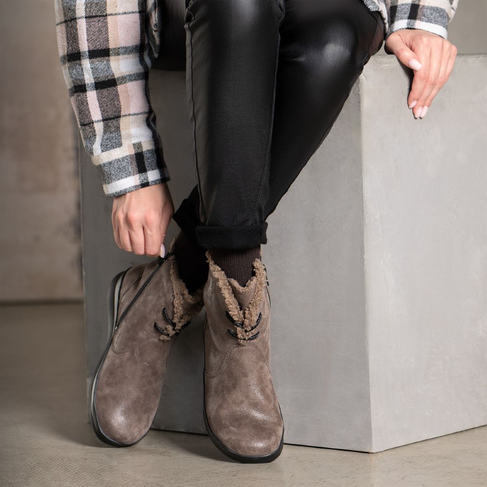 Зимние ботинки выполнены из натуральной кожи, плюша и подкладки из шерсти. Шнуровка позволяет отрегулировать полноту. Обувь подходит для профилактики и лечения умеренных деформаций стопы: плоскостопия, пяточной шпоры, высокого свода, отеков. Ботинки обеспечивают необходимую поддержку и амортизацию, облегчая боль и дискомфорт. Правильную биомеханику шага сохраняет предусмотренный перекат через большой палец.