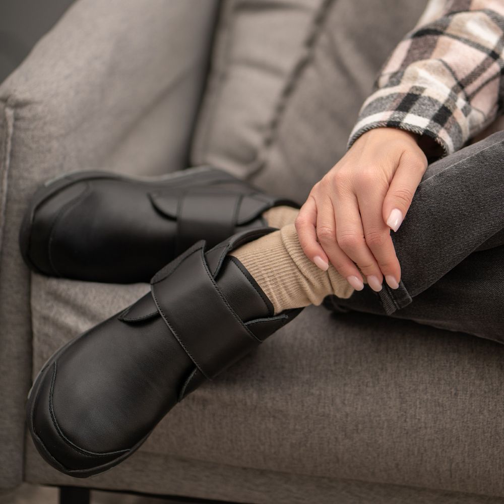 Благодаря регулируемой застежке на липучке (Velcro), ботинки легко подстраиваются под особенности стопы, включая высокий подъем. Устойчивая полиуретановая подошва с противоскользящим протектором обеспечивает уверенность при ходьбе в любую погоду.