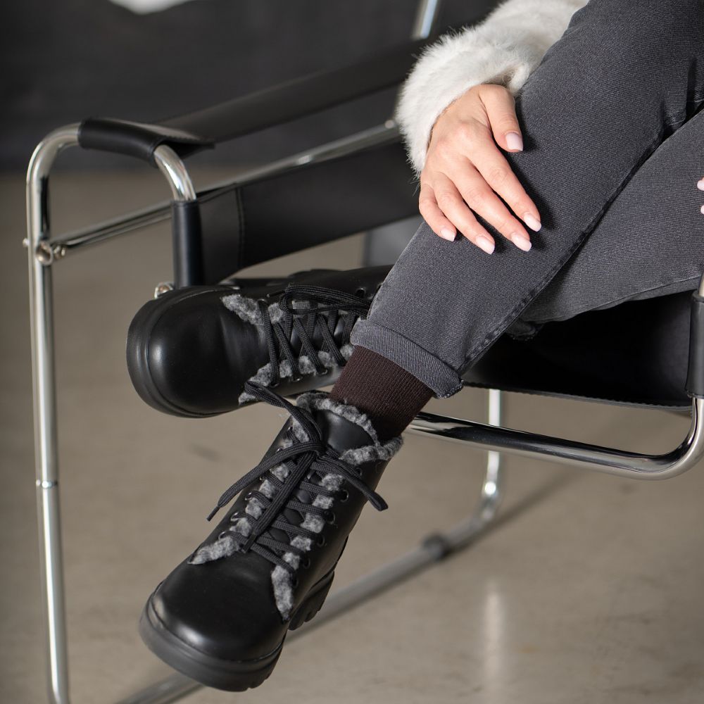 Модель для ношения в зимнее время года. Ботинки снижают ударную нагрузку на суставы при ходьбе, эффективны при продольном и поперечном плоскостопии, пяточной шпоре, различных отеках, обеспечивают правильное положение стоп. За счет удобной шнуровки полноту обуви легко отрегулировать под индивидуальные особенности пользователя.