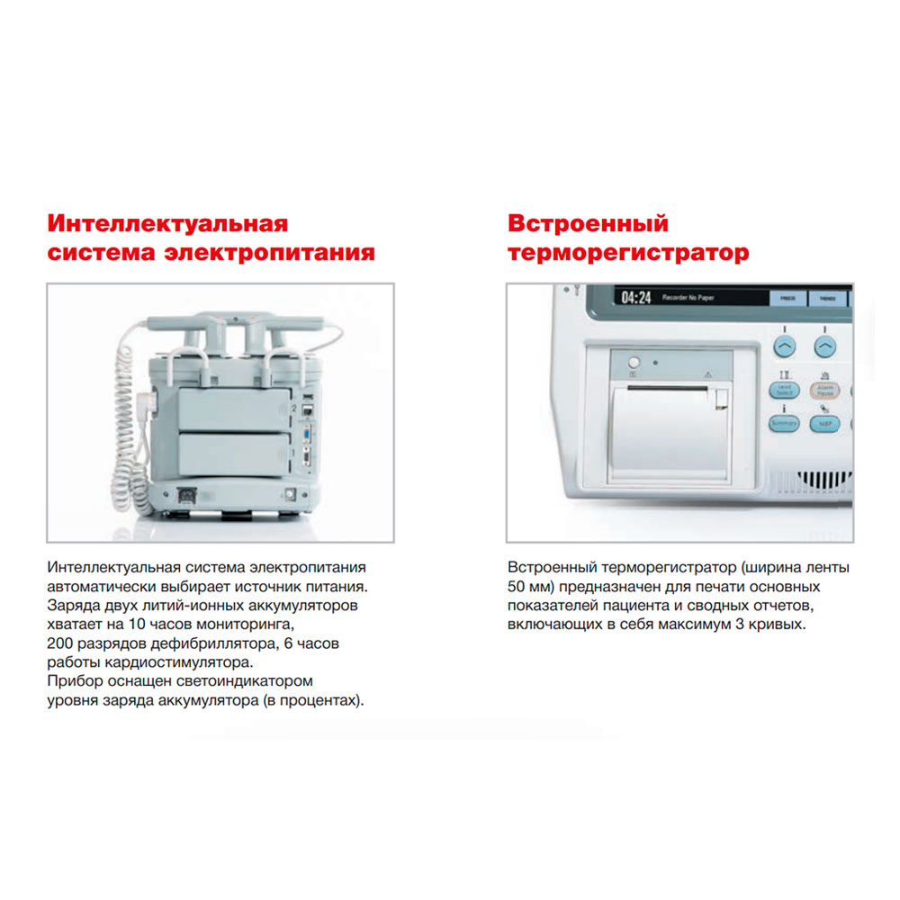 Прибор «4 в 1»: монитор, ручной дефибриллятор, автоматический наружный дефибриллятор (АНД) и кардиостимулятор. Предназначен для медицинских учреждений для работы в стационарных условиях и на выезде.