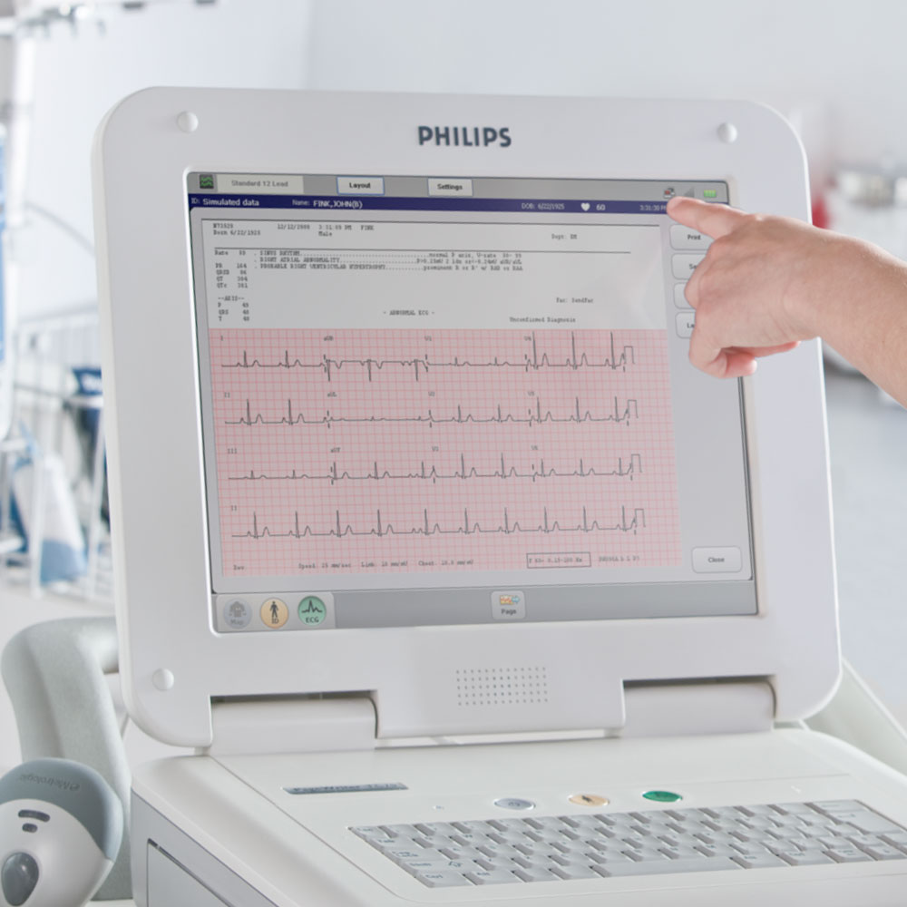 Аппарат для ускоренной процедуры регистрации ЭКГ в условиях стационара. Электрокардиограф Philips PageWriter TC70 запускается нажатием на зеленую кнопку (на клавиатуре, экране, модуле пациента). Подходит для кардиологических отделений, кабинетов функциональной диагностики, а также для работы в отделениях скорой медицинской помощи.