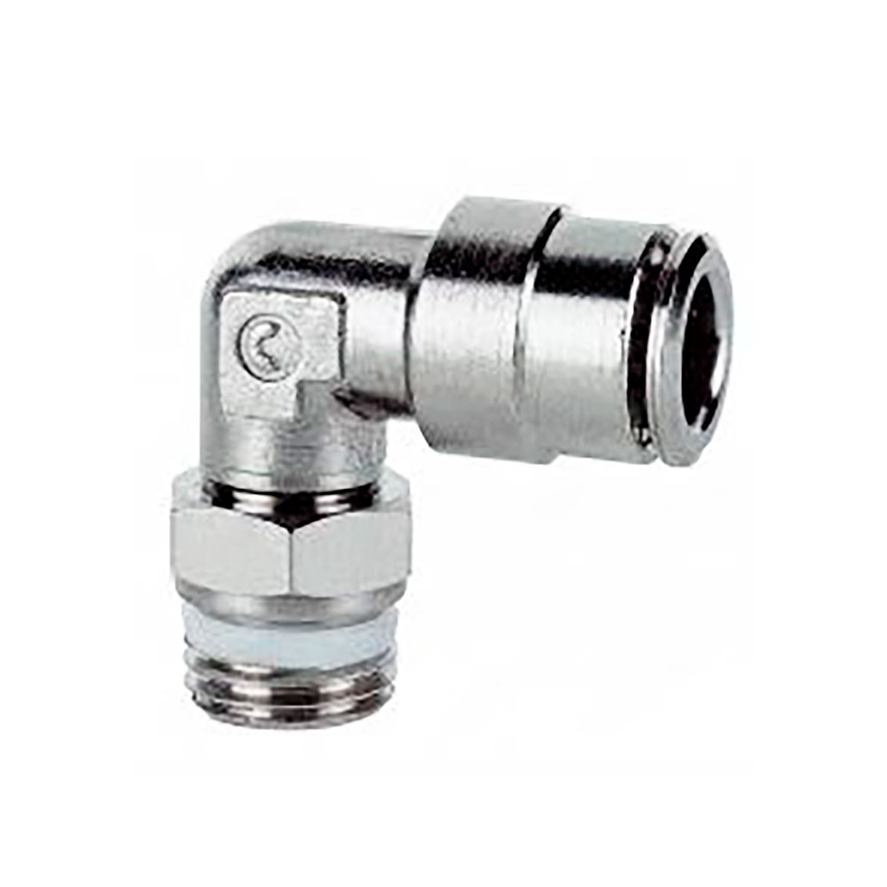 Уголок цанговый Camozzi S6520 4-1/8 поворотный, наружная резьба G1/8" с уплотнительным фторопластовым кольцом PTFE, цанга под трубку наружным диаметром 4 мм.