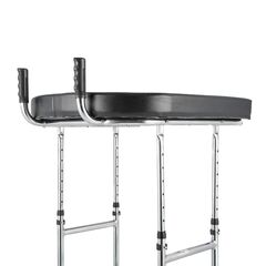 Чтобы устройство не скатывалось и не опрокидывалось, предусмотрен ручной тормоз, который можно достаточно быстро задействовать при необходимости. Опция регулировки высоты позволяет подстроить конструкцию под индивидуальные параметры и закрепить необходимую величину при помощи кнопочных фиксаторов или специальных болтов.