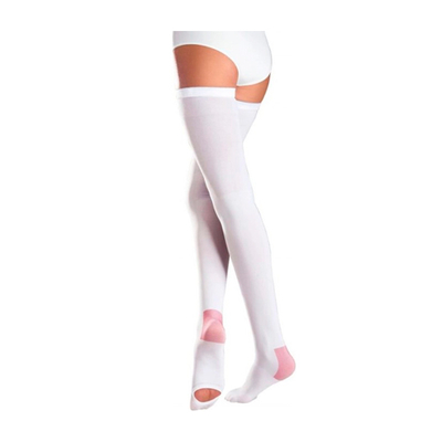 На противоэмболических компрессионных чулках Venoteks арт. 1A210 имеются специальные открытые носки для большего комфорта Ваших ног. Ткань не мнется, отсутствие складок создает абсолютное удобство и приятное ощущение для кожи. Фиксация чулков осуществляется благодаря силиконовым вставкам. Чулки VENOTEKS (Венотекс) легко стираются при температуре до 90 градусов. Стерилизовать можно паром при t ° 121 °C. Чулки данной модели представлены только белого цвета. Размеры имеются: S, M, L, XL. Для дам с широкими бедрами производители добавили специальную вставку на бедрах.