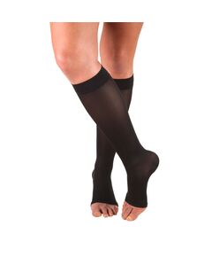 Если классы делятся в соответствии с лечебными свойствами, то виды отличаются по форме ношения. Трикотаж выпускается в виде чулок, гольф, колготок, и даже эластичных бинтов. Есть трикотаж для разных сезонов и для разных видов обуви. Например, для лета можно приобрести изделия с открытым носком.