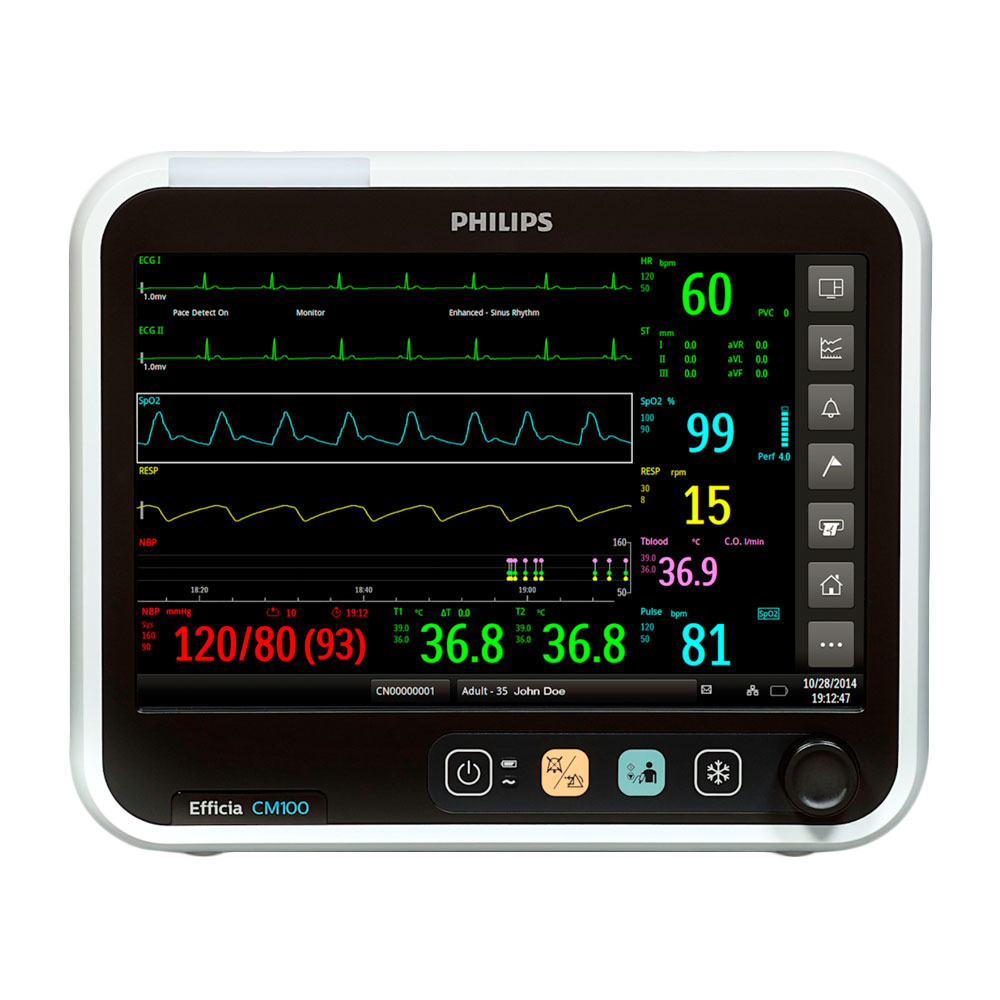 - Измеряя импеданс грудной клетки, монитор пациента Philips Efficia CM120 может регистрировать частоту дыхания;