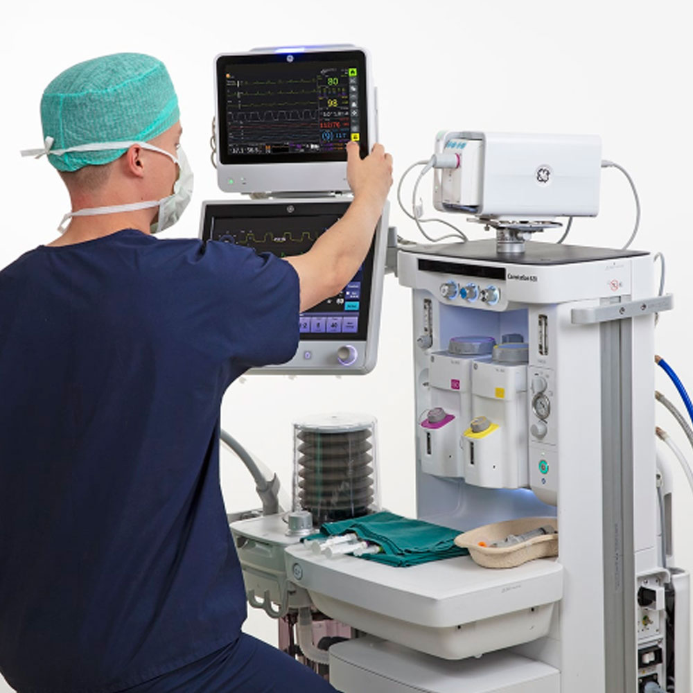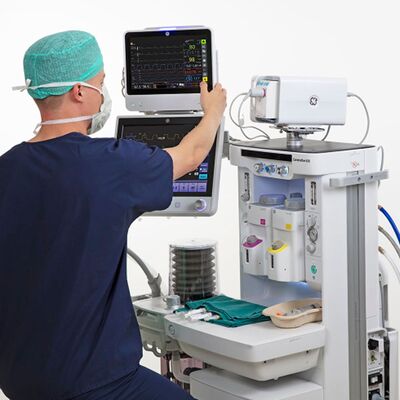 Наркозный аппарат GE Healthcare Carestation 620 sCAiO обеспечивает оптимальный уход за пациентами во время анестезии. Прибор также отображает важные показатели: концентрацию кислорода и анестетиков в дыхательных газах, частоту дыхания, уровень углекислого газа в крови.