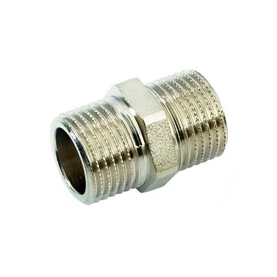 Никелированный ниппель HH с наружной резьбой используется для соединения резьбовых элементов в системах водоснабжения (холодного и горячего) и отопления. Он применяется, когда необходимо соединить трубопроводы одинакового диаметра.