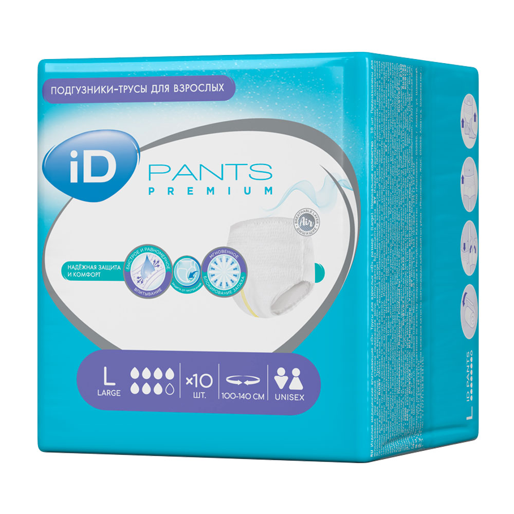 У нас можно купить подгузники-трусы для взрослых ID Pants Premium. Оформите заказ на сайте или по телефону. Доставка по городу и РФ. Самовывоз из ПВЗ.