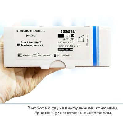 Одна дополнительная канюля фенестрированная, другая без отверстий. Их использование и регулярная чистка с помощью гигиенического ершика снижают частоту замены трубки и риск развития окклюзии.