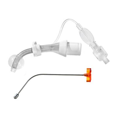 Трахеостомическая трубка для детей оснащена водяной манжетой H₂O и спиральным армированием, которое повышает устойчивость изделия к перегибам и деформации. Модель имеет удлинённую проксимальную часть, что расширяет возможности подбора и установки. Трубка изготовлена из мягкого медицинского силикона с высокой степенью биосовместимости. Манжета наполняется исключительно стерильной водой и в сдутом состоянии плотно прилегает к канюле, не образуя складок и не препятствуя прохождению воздуха. Изделие поставляется в индивидуальной стерильной упаковке.
