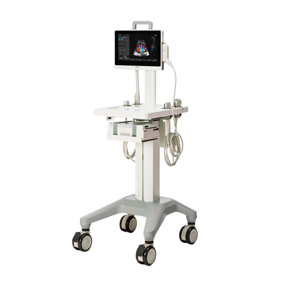 Портативный УЗИ аппарат Philips InnoSight предназначен для широкого спектра исследований. Имеет сенсорный экран, термопринтер, 3 держателя для датчиков и 1 для флакона с гелем.